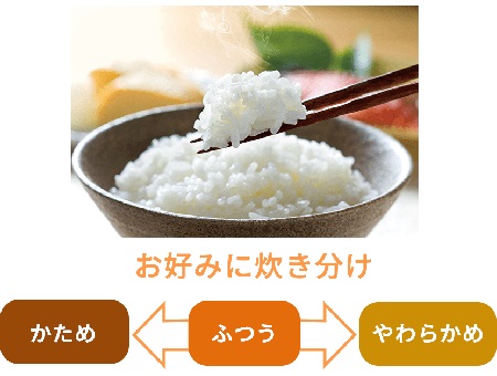 家庭の好みに合わせて「やわらかめ・ふつう・かため」の3段階から炊き上がりの食感を選ぶことができます。